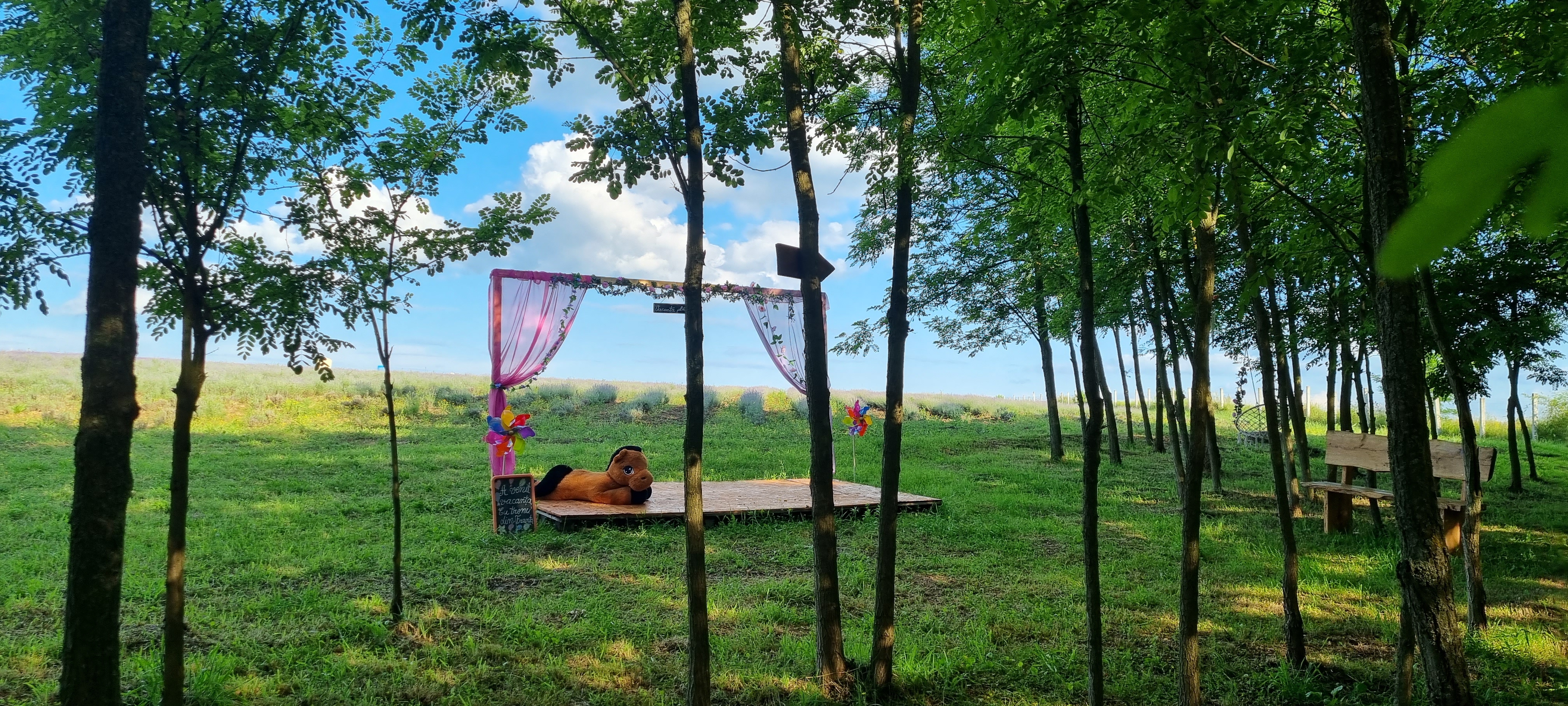 Numele Povestea Lavandei nu este întâmplător. Chiar există o poveste a lavandei scrisă de mine. Pentru copii trebuie să existe o poveste pentru orice, așa ca odată plantat lanul de lavandă, în februarie 2022, a trebuit să apară și o poveste a lavandei, pe care am scris-o cu drag pentru David, fiul meu cel mare. Și tot pentru băieții mei, pentru ca ei să aibă un loc de joacă și de alergat în voie în lavandanatură, ne-am gândit să amenajăm și pădurea de salcâmi de lângă lan, aflată tot în proprietatea noastră. Și uite așa a luat nastere părculețul numit astăzi Povestea Lavandei.